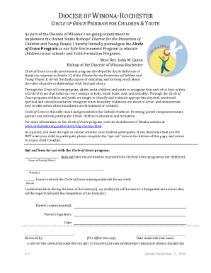 Fillable Online PDF Circle of Grace Parent Opt Out Form Bishop