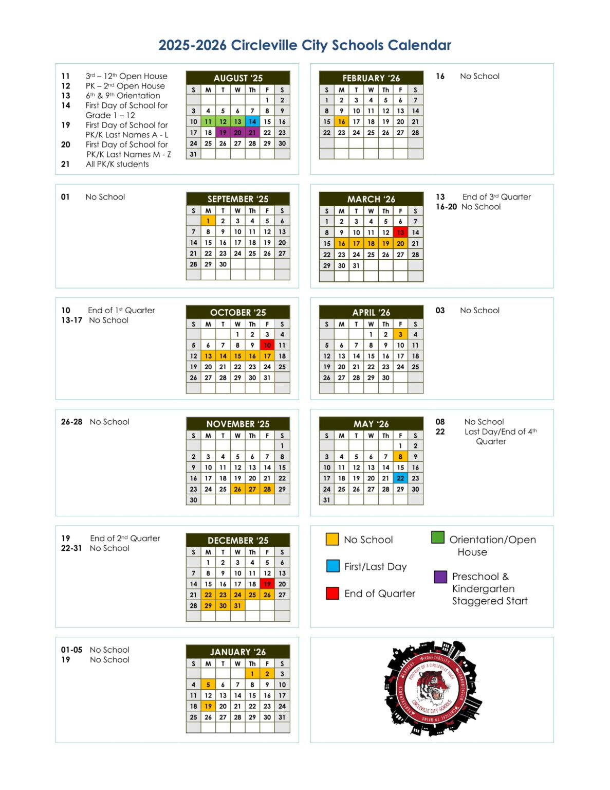 Circleville City Schools Releases Signature Dates for 2025 26 School