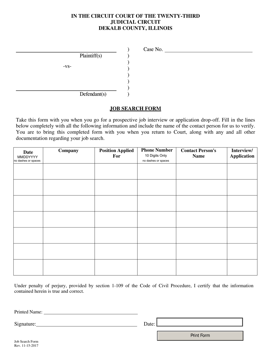 DeKalb County Illinois Job Search Form Fill Out Sign Online and