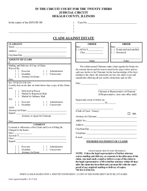 Fillable Online 23rd Circuit Court Form Claim Against Estate DeKalb