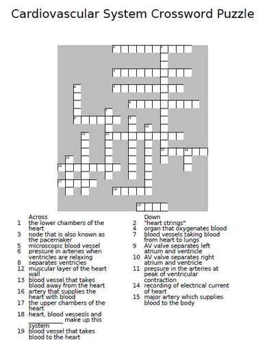 Cardiovascular System Unit Crossword Puzzle Teaching Resources