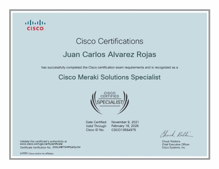 Cisco Meraki Solutions Specialist Certificate PDF