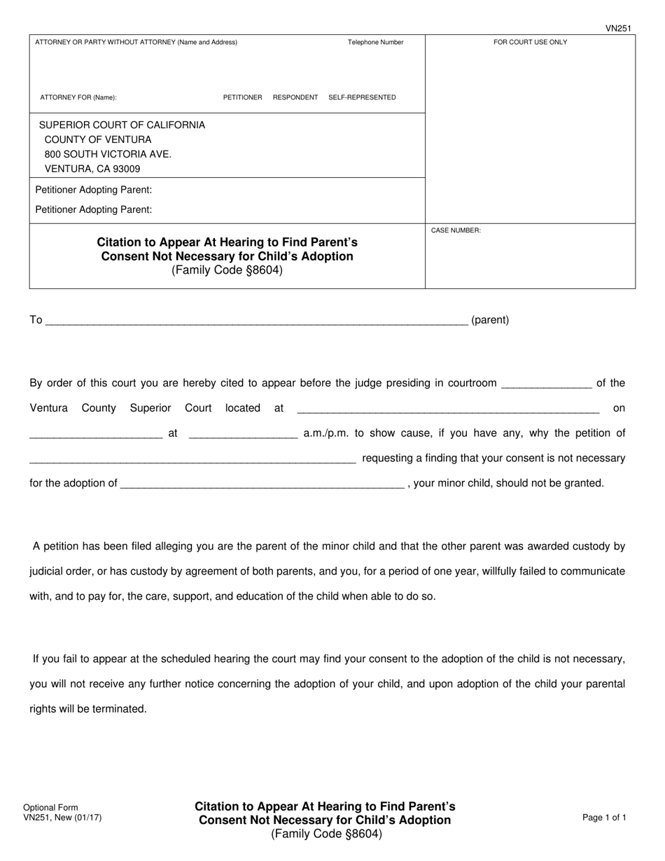 Form VN251 Download Printable PDF or Fill Online Citation to Appear at