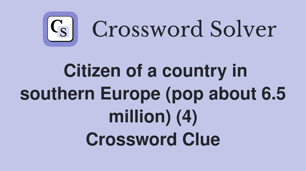 Citizen of a country in southern Europe (pop about 6 5 million) (4