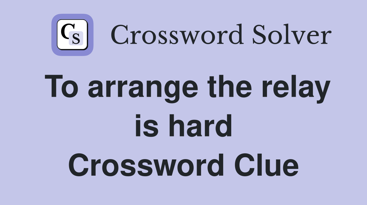 To arrange the relay is hard Crossword Clue Answers Crossword Solver