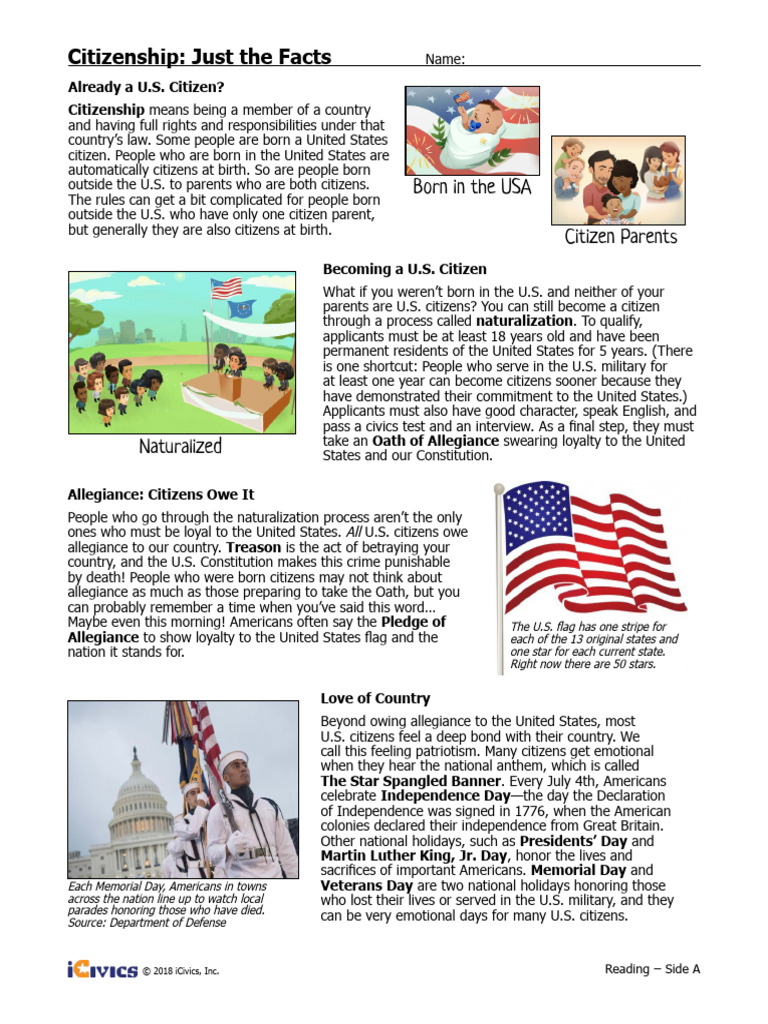 Handout 2 Citizenship Just the Facts Reading PDF