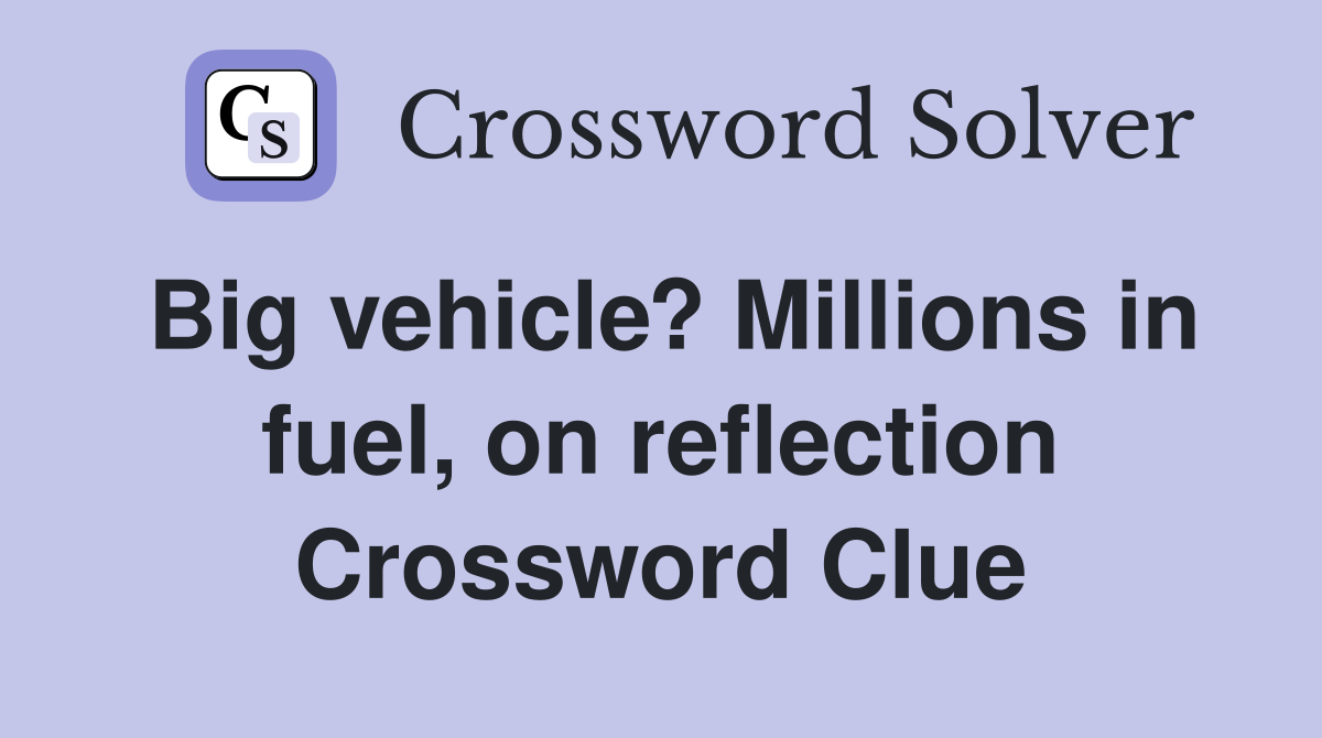Big vehicle? Millions in fuel on reflection Crossword Clue Answers