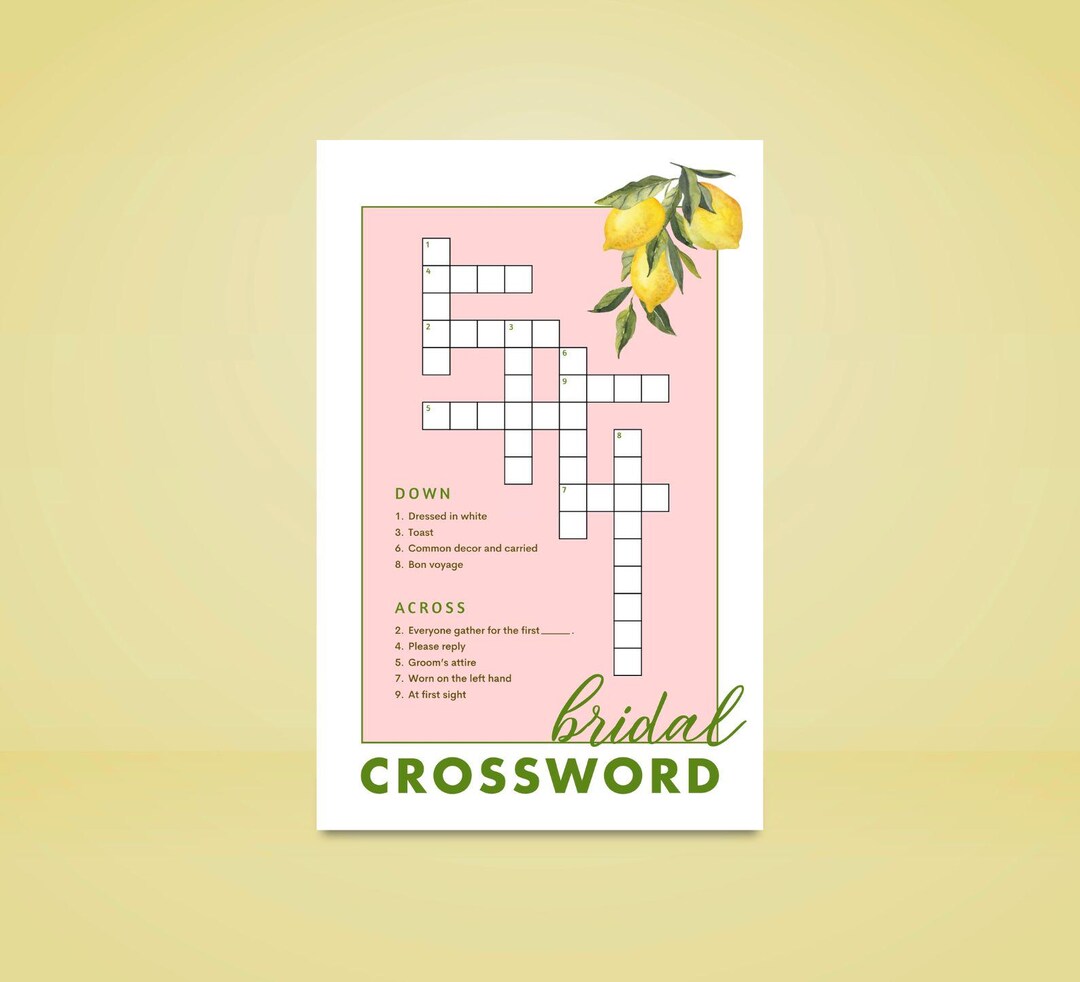 Lemon Citrus Bridal Shower Crossword Game Italian Summer Wedding