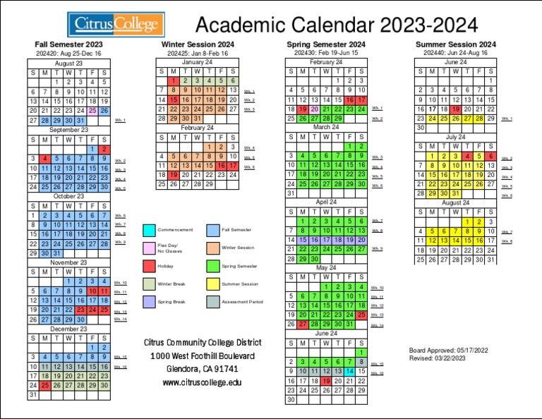 Citrus College 2023 24 Calendar PDF Schools Educational Institutions