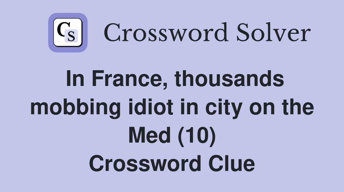 In France thousands mobbing idiot in city on the Med (10) Crossword