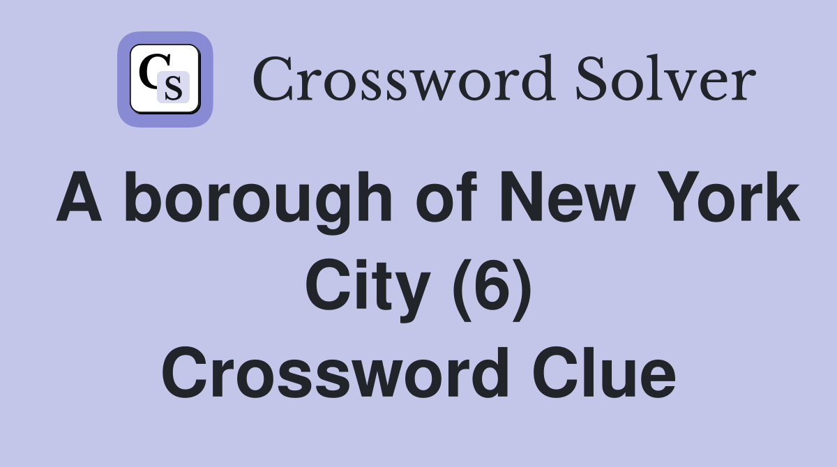 A borough of New York City (6) Crossword Clue Answers Crossword Solver