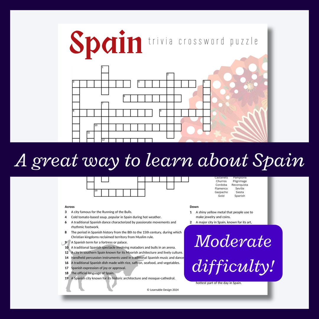 Learn About Spain Crossword Puzzle: Great Research Activity or Culture