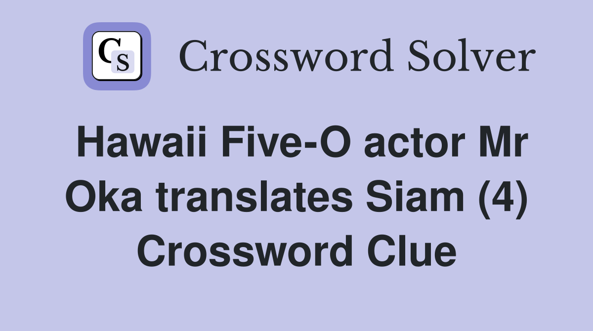 Hawaii Five O actor Mr Oka translates Siam (4) Crossword Clue Answers