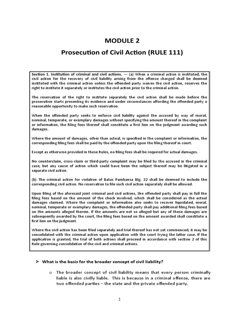 Prosecution of Civil Action (RULE 111) PDF Lawsuit Burden Of
