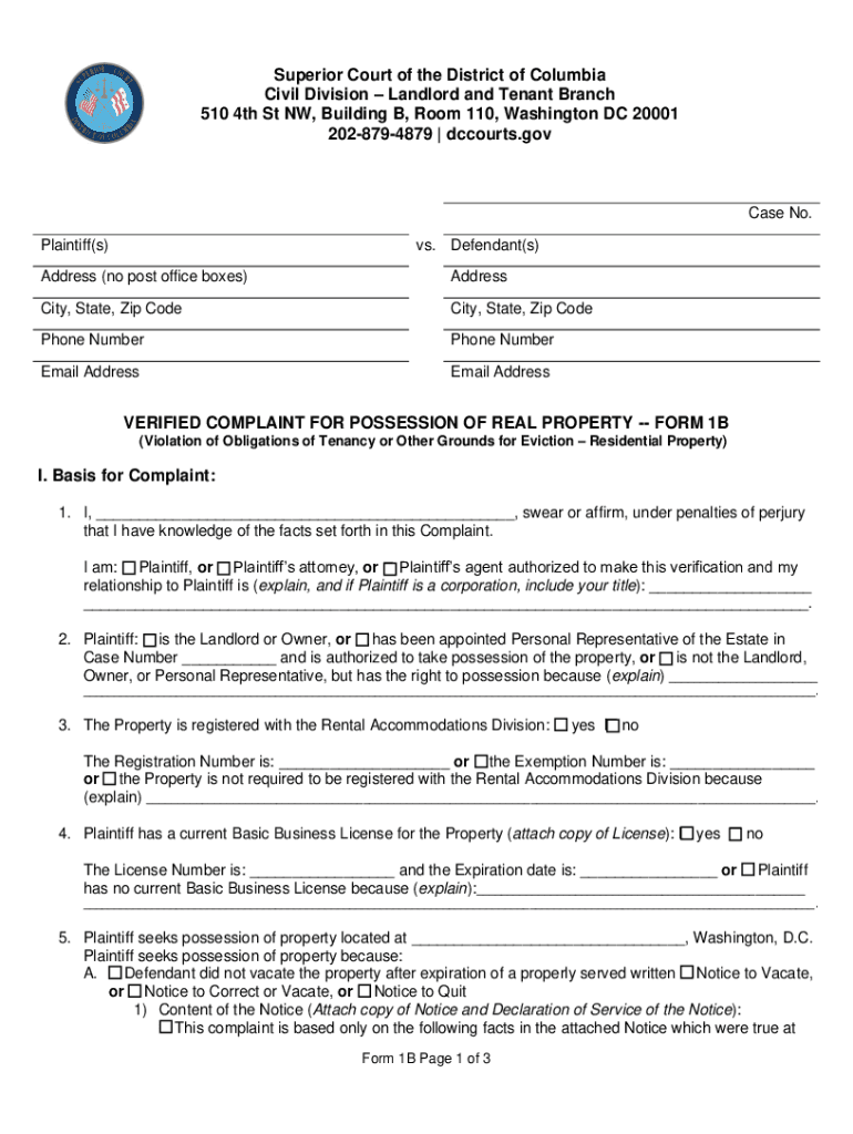 Fillable Online D C Superior Court: Civil Division: Landlord and