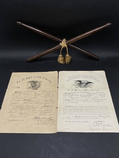 Civil War Discharge Certificate And Soldier #39 s Drum Sticks