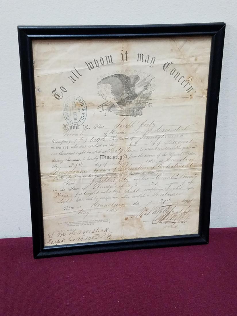 Harrisburg Civil War Discharge Certificate Jun 15 2019 Cordier
