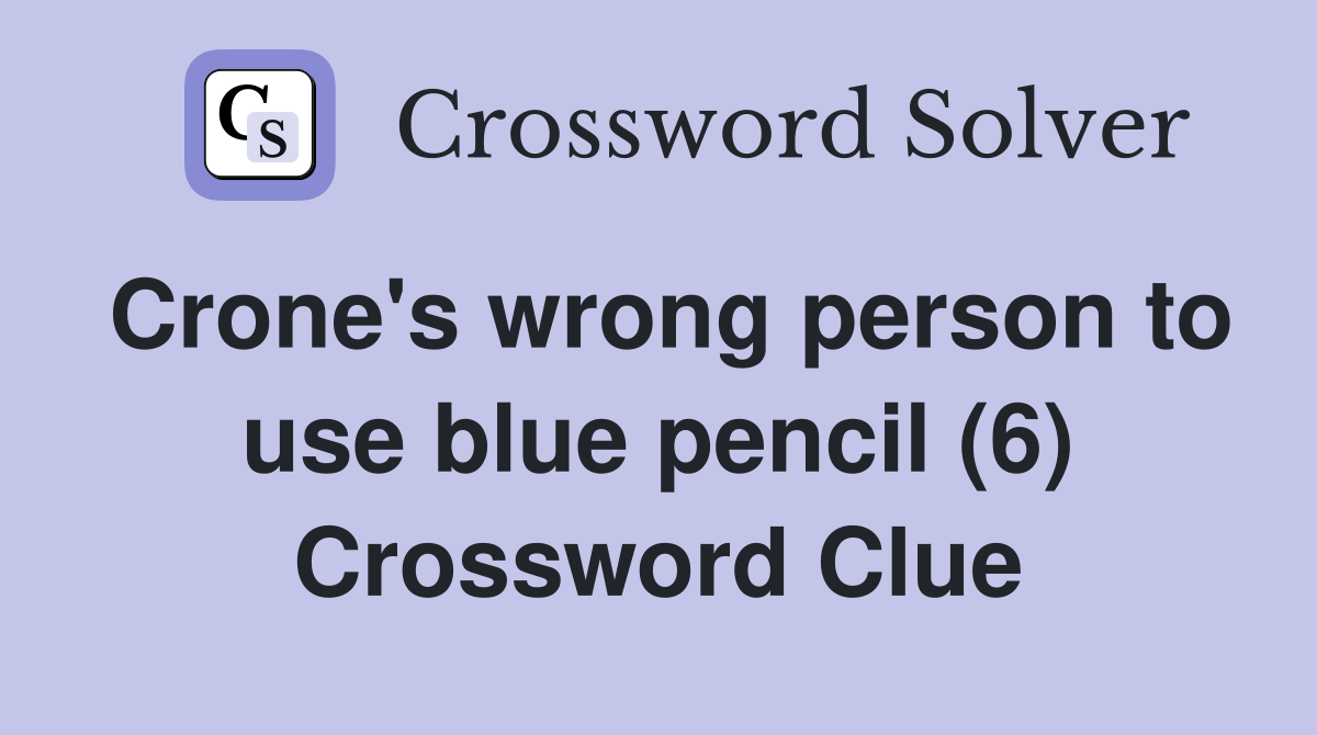 Crone #39 s wrong person to use blue pencil (6) Crossword Clue Answers