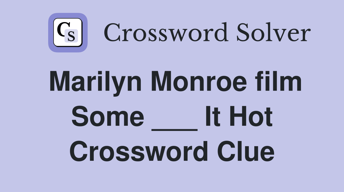 Marilyn Monroe film Some It Hot Crossword Clue Answers