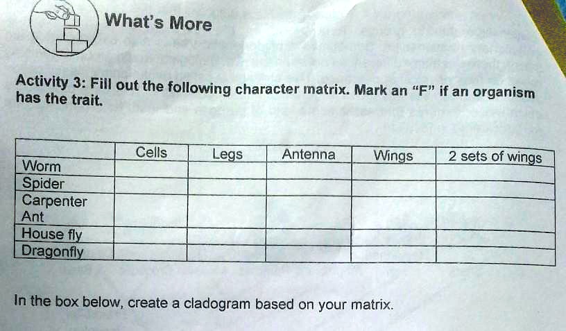 What #39 s More Activity 3: Fill out the following character matrix Mark