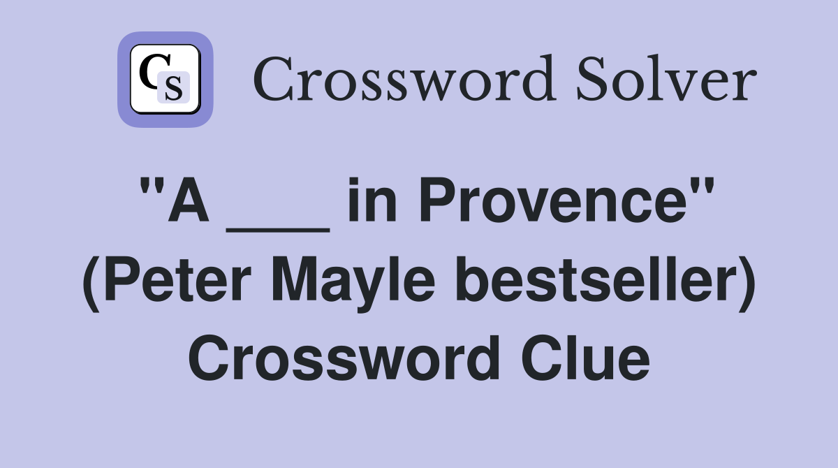 quot A in Provence quot (Peter Mayle bestseller) Crossword Clue Answers