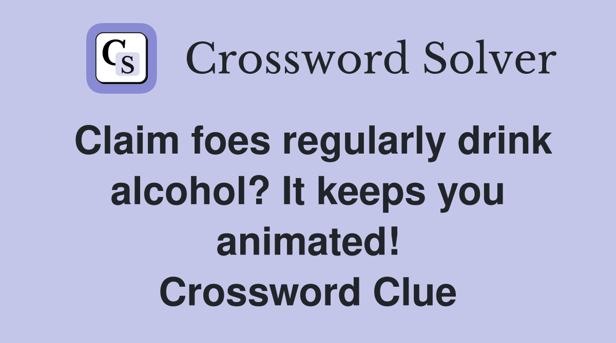 Claim foes regularly drink alcohol? It keeps you animated Crossword