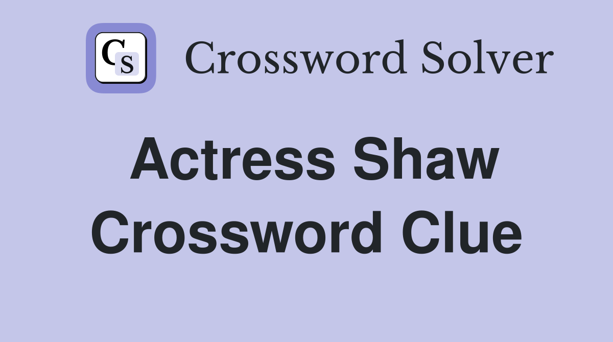 Actress Shaw Crossword Clue Answers Crossword Solver