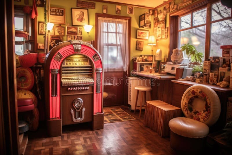 Classic Jukebox in a Cozy Home Setting Stock Image Image of jukebox