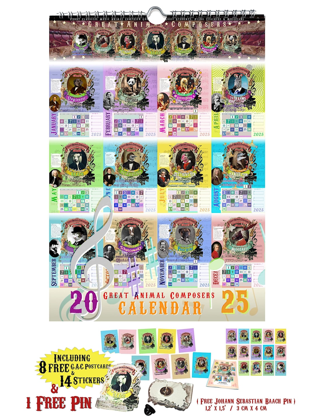Classical Music Calendar 2025 Funny Great Animal Composers Wall