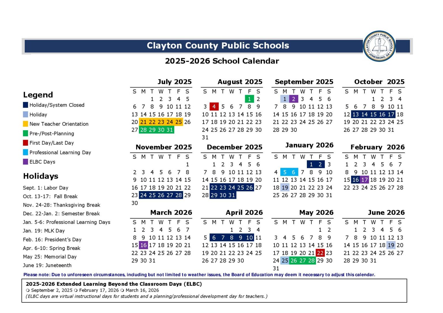 Clayton County Public Schools Calendar 2025 2026 Holidays
