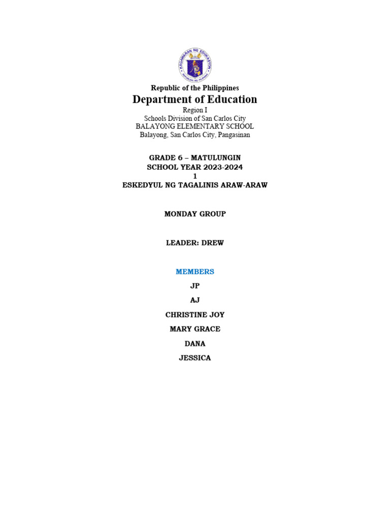 Deped classroom cleaners of the day chart Artofit