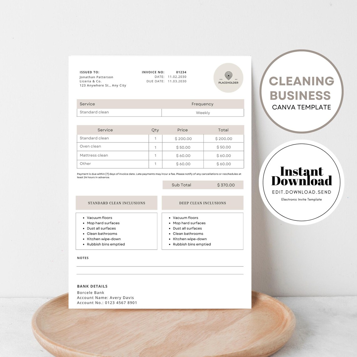 Cleaning Business Invoice Template Canva Printable Billing Sheet