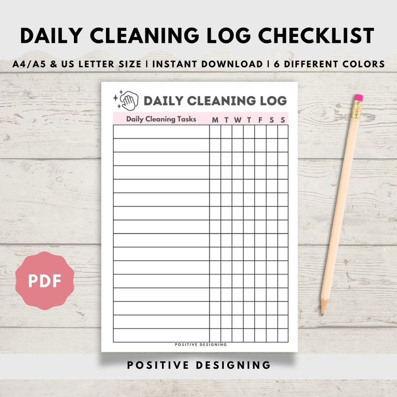 Printable Cleaning Checklist Daily Cleaning List Cleaner Etsy