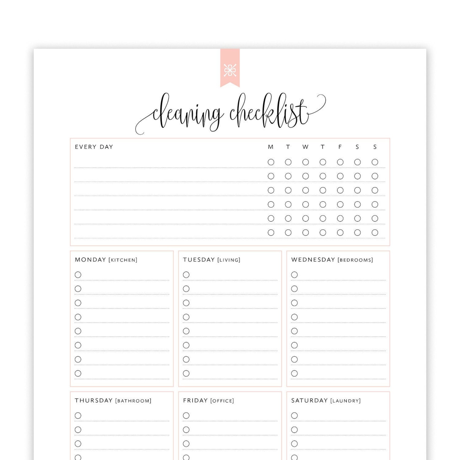 Printable Free Daily Cleaning Checklist Free download and print for you