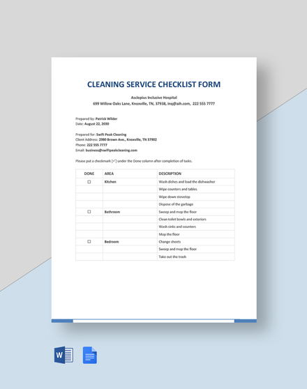 Cleaning Checklist Template in Pages Word Google Docs Excel Google