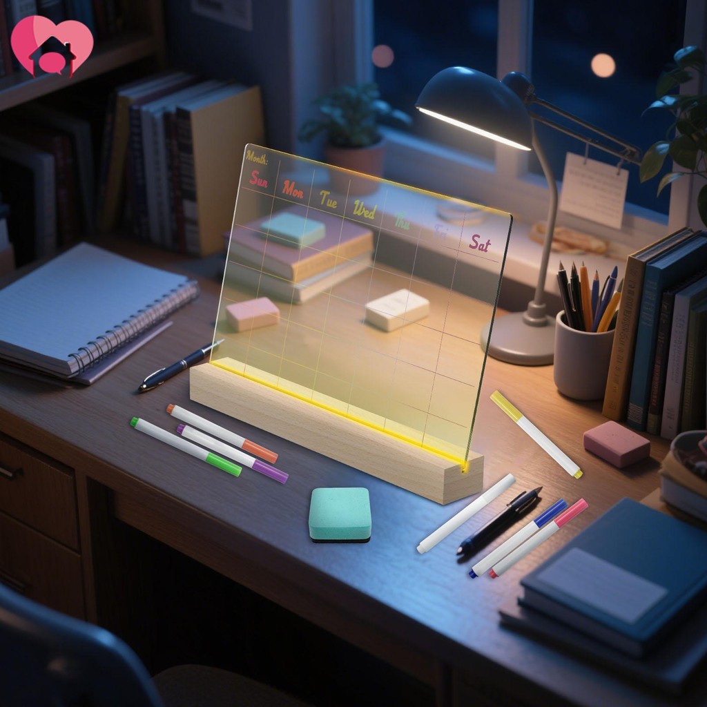 Clear Dry Erase Calendar Easy to Use Acrylic Desk Calendar with Wood