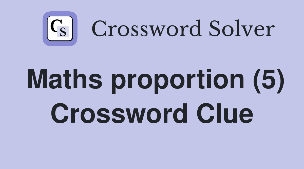 Maths proportion (5) Crossword Clue Answers Crossword Solver