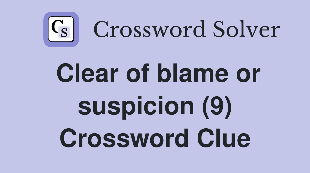 Clear of blame or suspicion (9) Crossword Clue Answers Crossword Solver