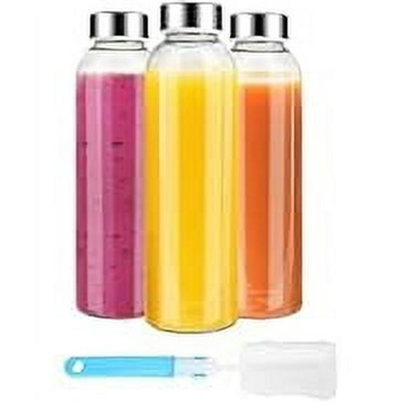 Clear Glass Bottles with Lids 18 oz Reusable Glass Water Bottles with