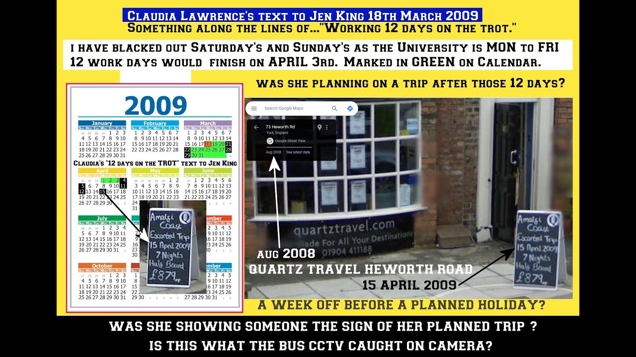 Claudia Lawrence quot 12 WORKING DAYS quot text clue and quot Quartz Travel