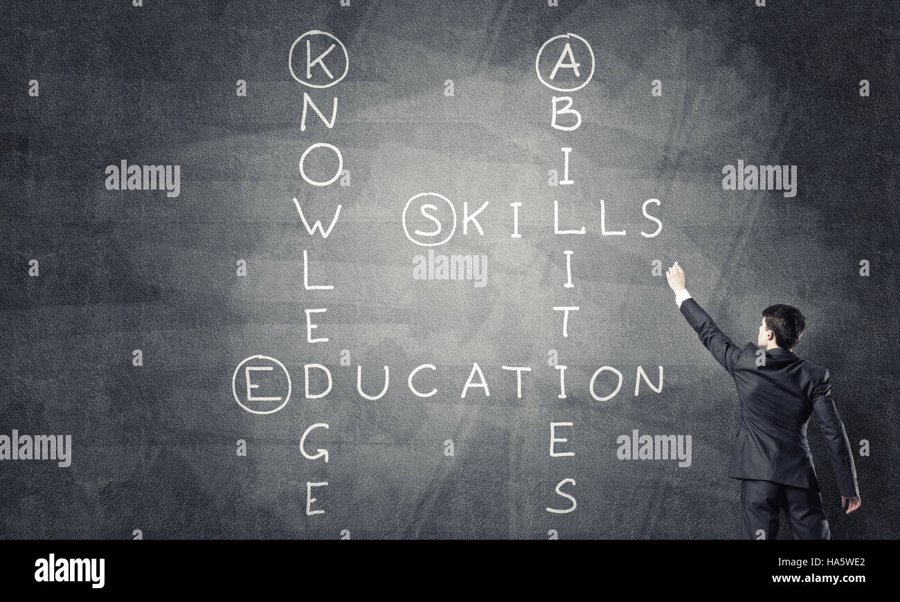 Studying concept with crossword drawn with chalk on blackboard Stock