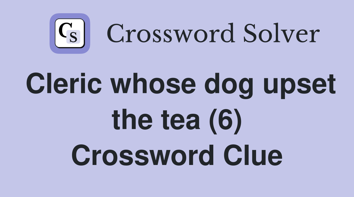 Cleric whose dog upset the tea (6) Crossword Clue Answers Crossword