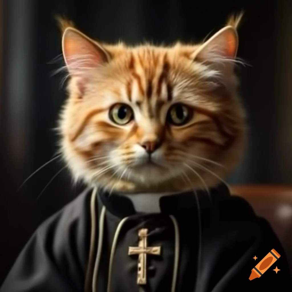 Golden tabby cat character dressed in clerical vestments on Craiyon
