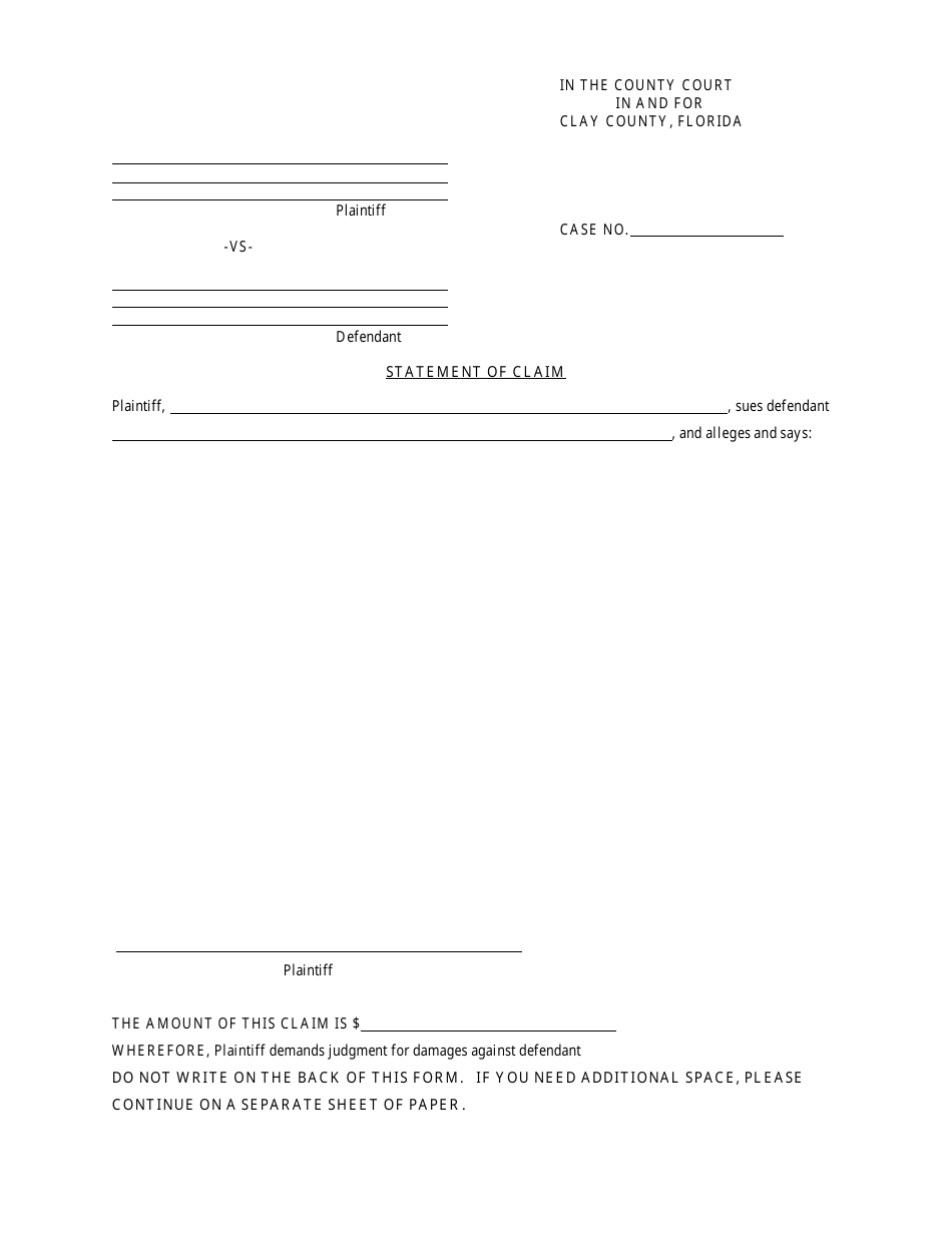 Clay County Florida Statement of Claim Fill Out Sign Online and