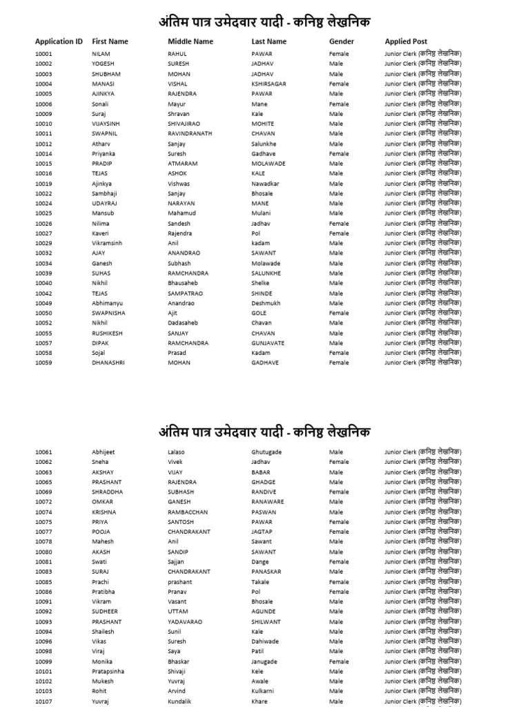 Junior Clerk Eligible Candidates PDF