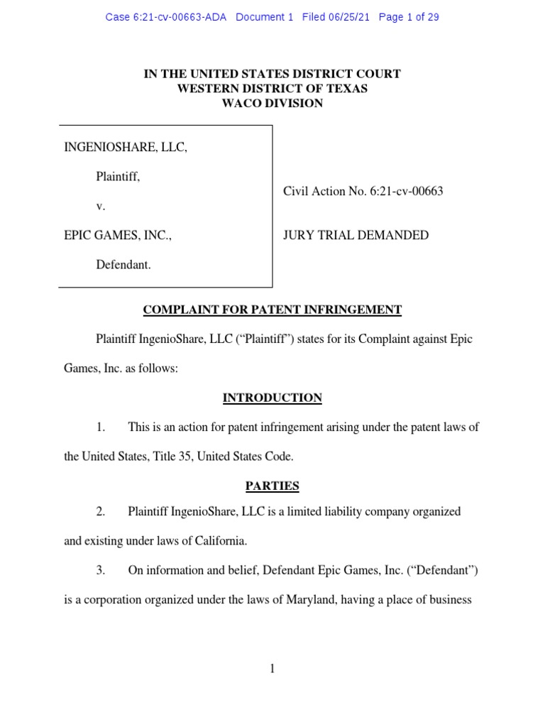 Fillable Online 1 IN THE UNITED STATES DISTRICT COURT WESTERN DISTRICT