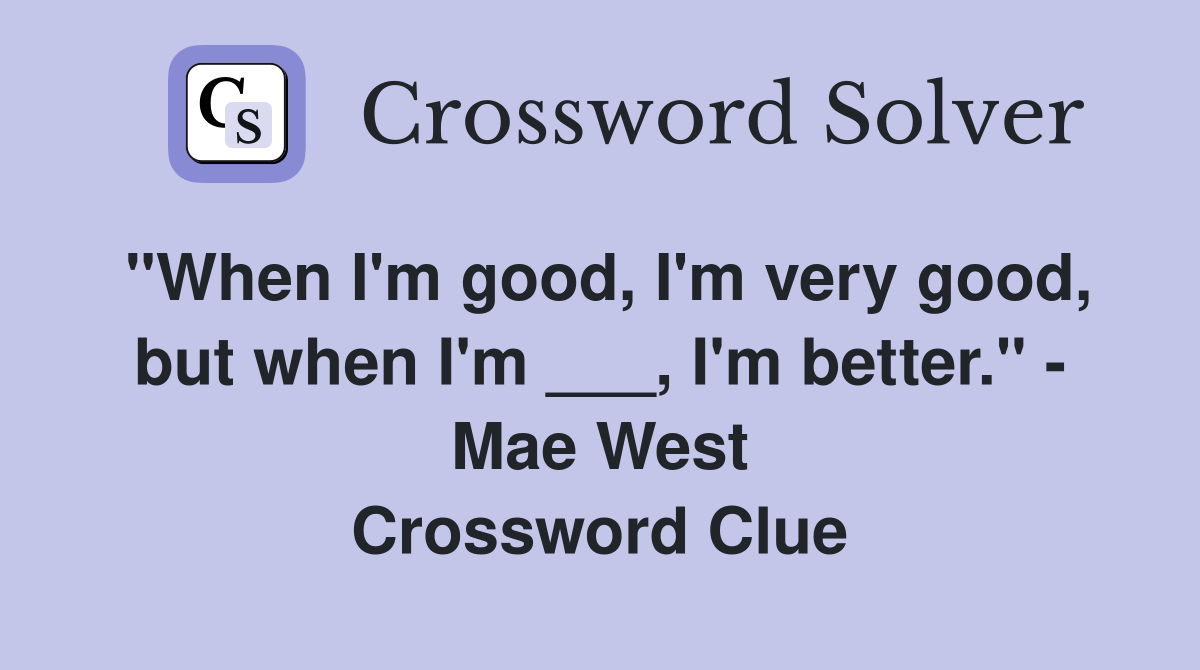 quot When I #39 m good I #39 m very good but when I #39 m I #39 m better quot Mae