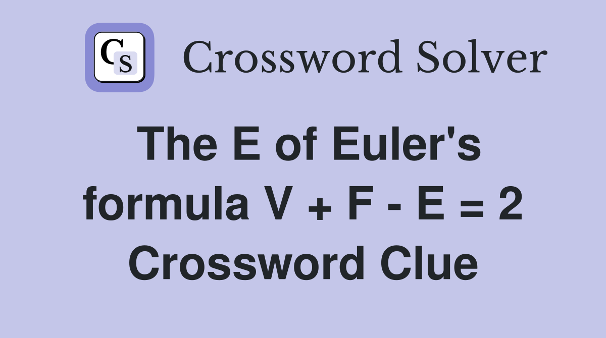 The E of Euler #39 s formula V F E = 2 Crossword Clue Answers