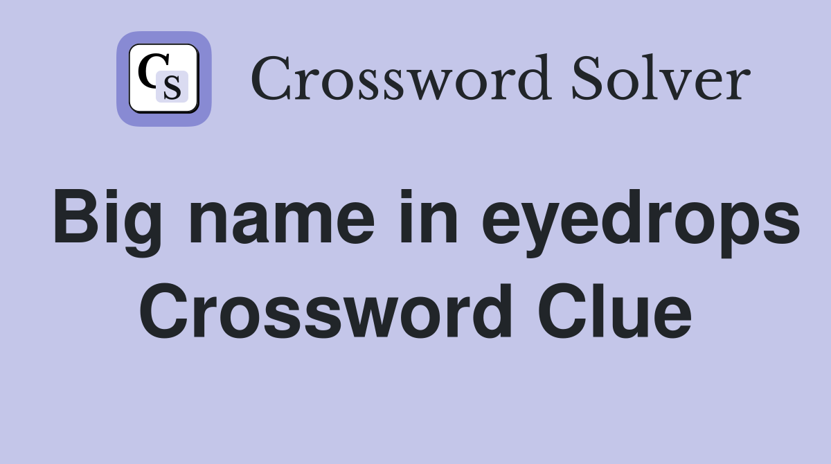 Big name in eyedrops Crossword Clue Answers Crossword Solver