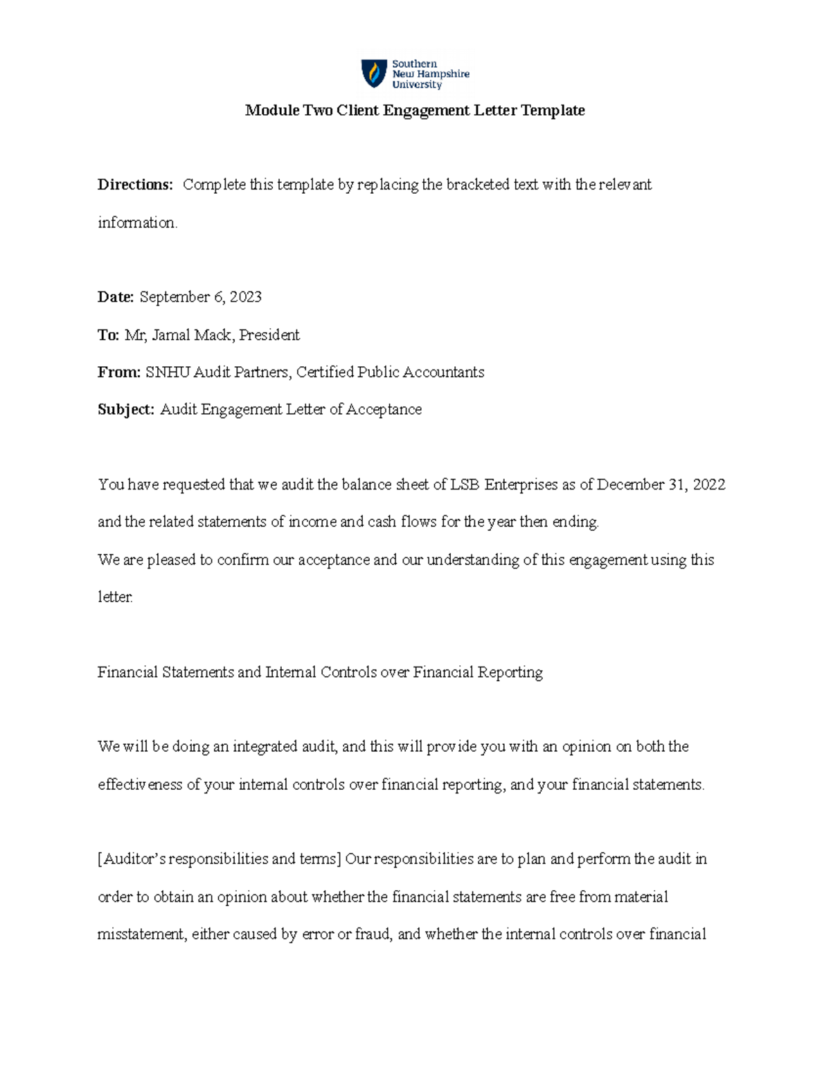 ACC 411 Module Two Client Engagement Letter Template Guide Studocu